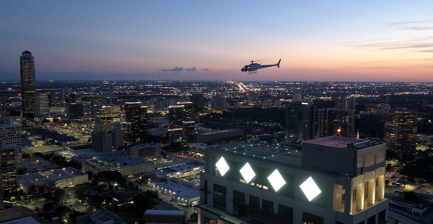 Транспортный трафик в Хьюстоне перегружен, но вы можете пропустить пробки, прибыв в 5-звездочный отельный комплекс The Post Oak Hotel at Uptown Houston на… двухмоторном вертолете Bell 430. Винтокрыл доставит вас прямо на вертолетную площадку курорта.