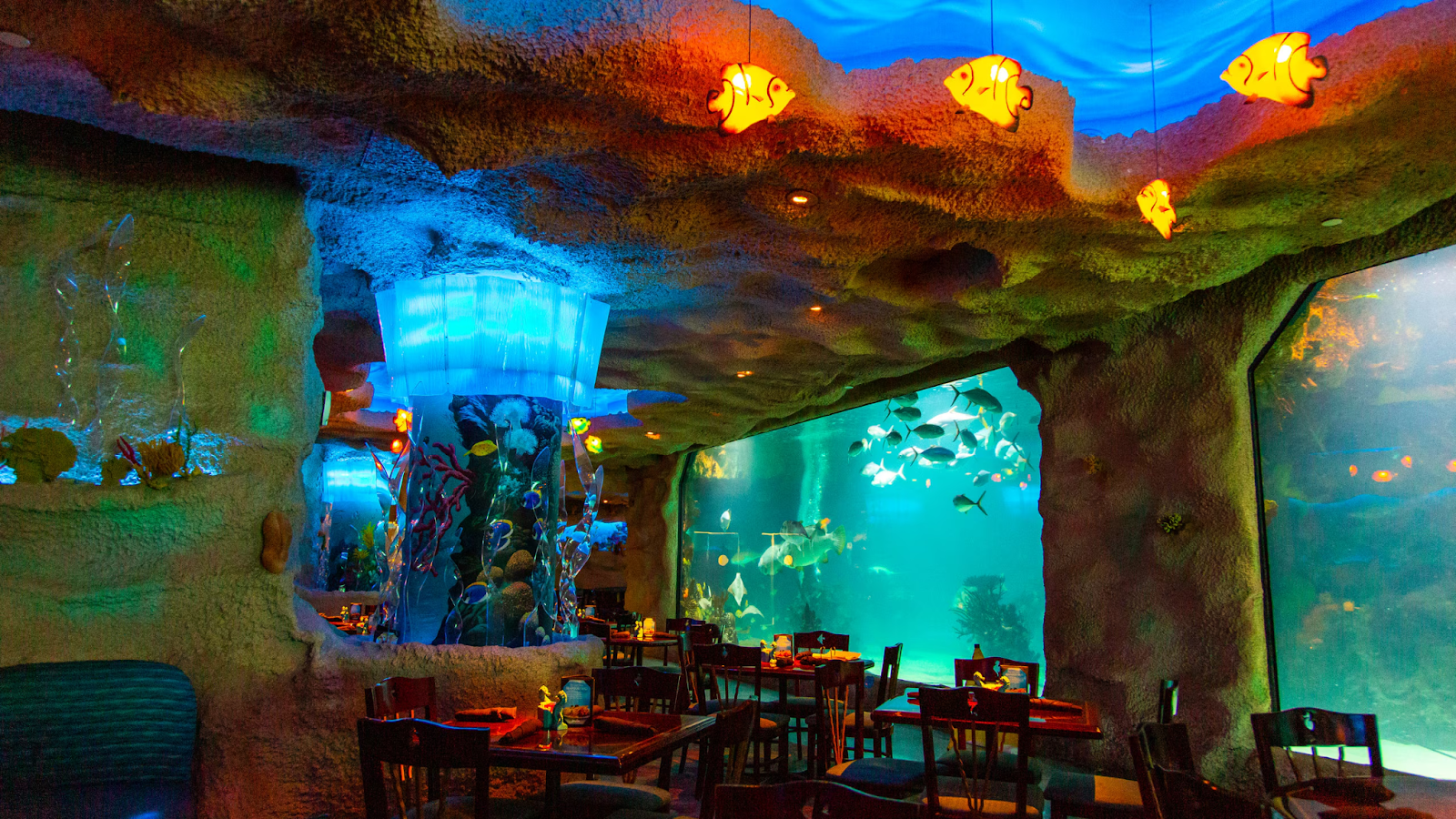 При планировании посещения заведения следует учесть такой аспект как время: просто зайти на часок не удастся. Аквариум имеет более 200 разнообразных и интересных экспонатов. Здесь живут большие морские черепахи, страшные аллигаторы, гигантский осьминог, сомы, лягушки-быки, рыба-клоун и многие другие морские жители. Владельцы заведения прекрасно продумали размещение питомцев: кроме того, что они создали максимально приближенную среду их обитания для полного погружения посетителей в морской колорит, так еще и локации придумали тематические. К примеру, павильон, где живет гигантский осьминог, называется «Затонувший корабль», а путешествие на небольшом паровозике через тоннель, где сводчатый потолок и стены из стекла, а за ними большая и неизвестная океаническая экосистема, называется «Прогулка с акулой».